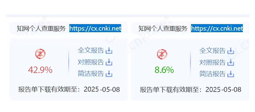 优化后的数据是这样的:查重率从42%降到了8.6%,AIGC率从85%降到了19%。